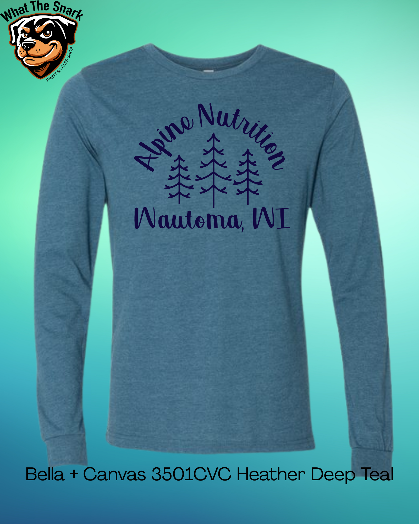 Support Alpine Nutrition with this premium Bella + Canvas long sleeve tee, featuring a striking design of three trees alongside the Alpine Nutrition name and Wautoma, WI. Crafted from high-quality fabric for lasting comfort and durability, this tee makes a meaningful statement while giving back to the community. Every purchase directly supports Alpine Nutrition's mission. Perfect for those who value both style and purpose.
