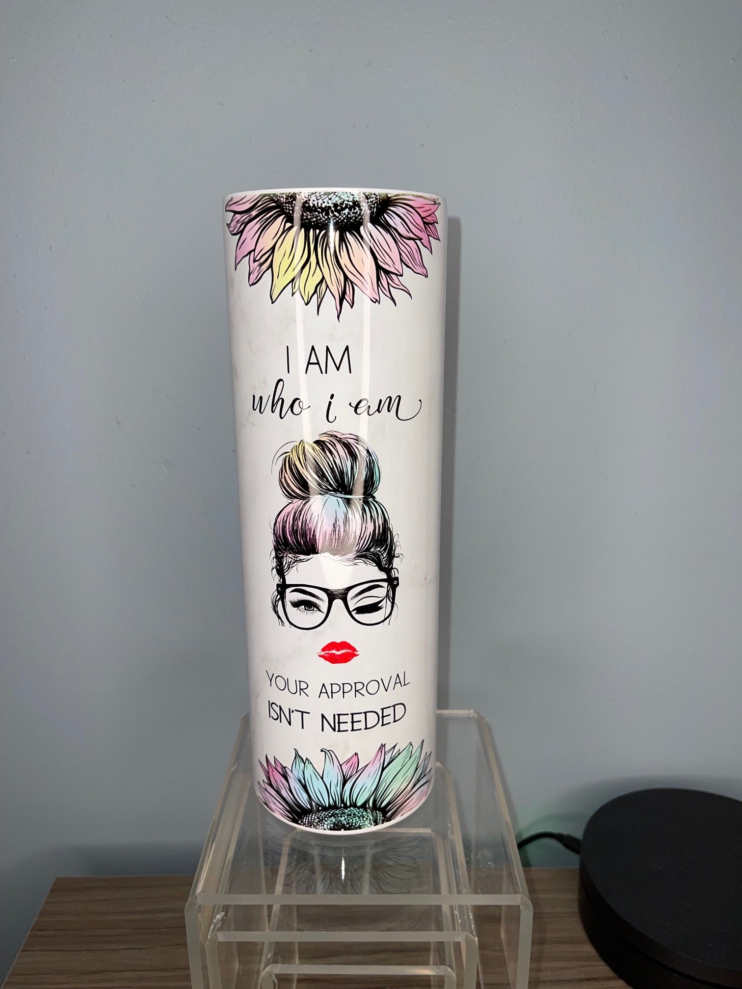 Own your vibe with this 20 oz stainless steel tumbler. Featuring “I am who I am. Your approval is not needed,” it’s durable, insulated, and designed for daily use—because confidence looks good on everyone.