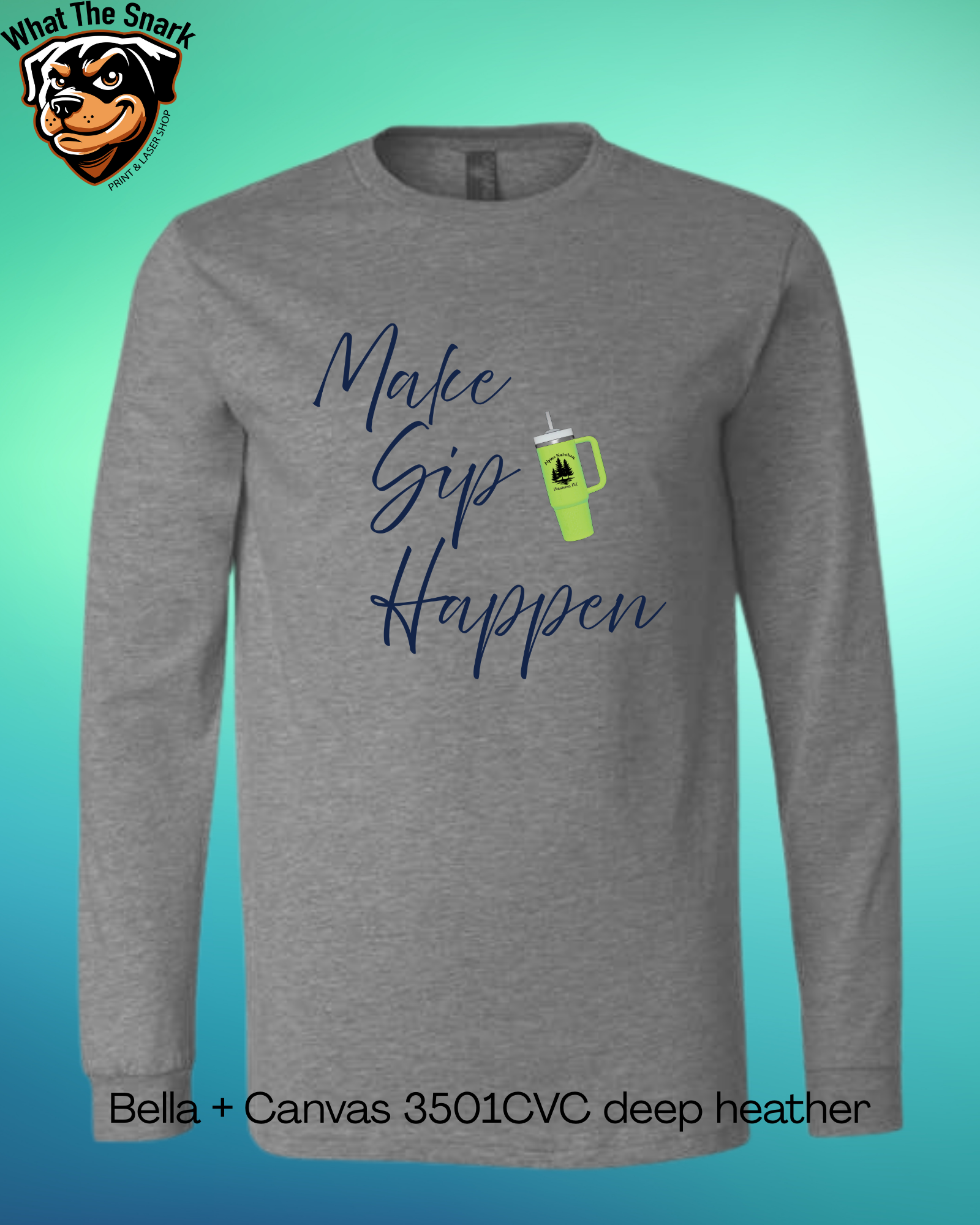 Embrace a lifestyle of wellness with this Bella + Canvas long sleeve tee showcasing the motivational phrase "Make Sip Happen" paired with a tumbler graphic. Constructed from premium fabric, this shirt delivers exceptional comfort and longevity for everyday wear. A portion of proceeds benefits Alpine Nutrition, allowing you to support a meaningful cause with every wear. Ideal for those committed to health-conscious living and community impact.