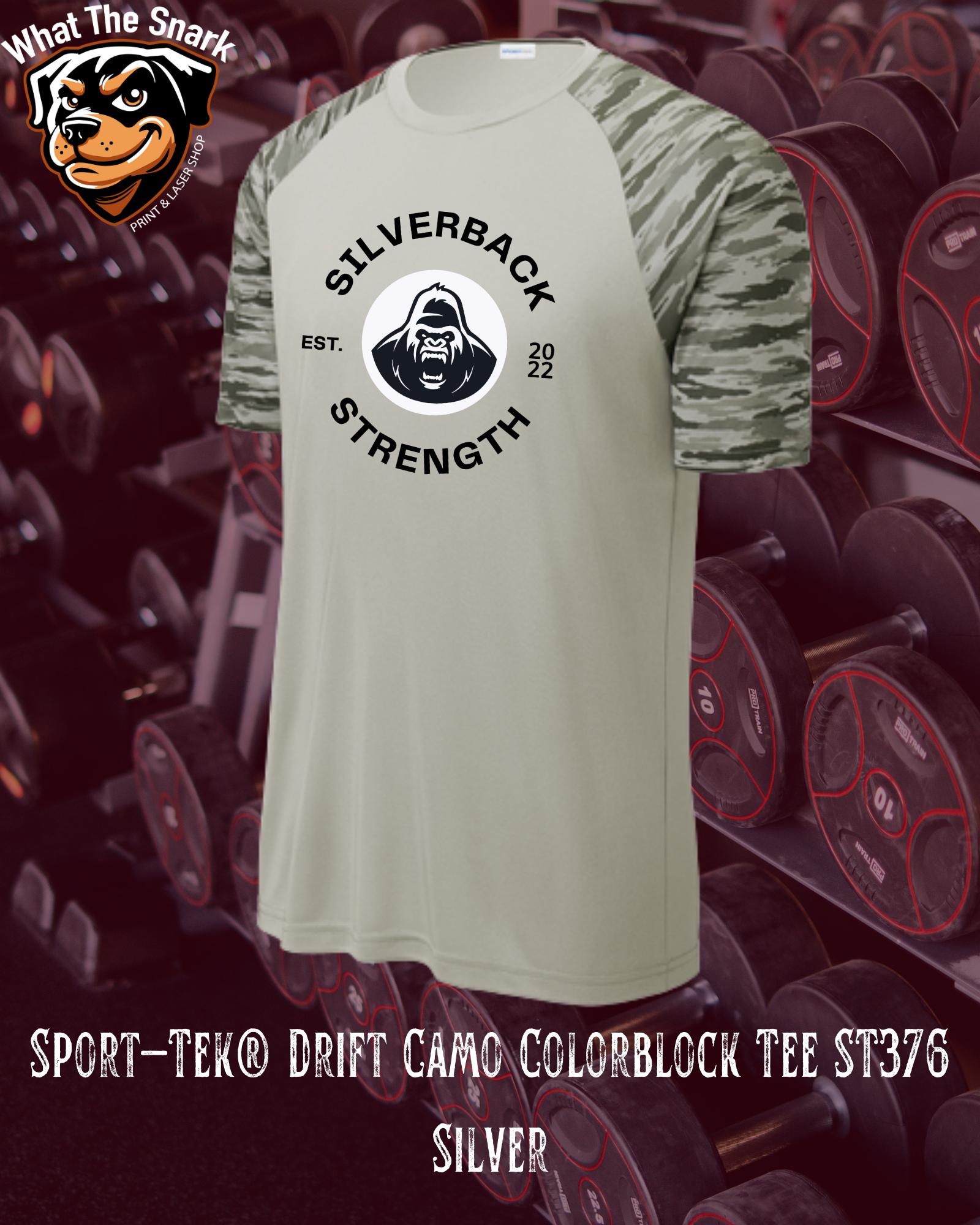 Designed for movement and durability, the Sport-Tek Drift Camo Colorblock Tee delivers moisture-wicking comfort in a clean athletic fit. The Silverback Strength logo adds gym pride to a rugged camo look that works inside and outside the gym.