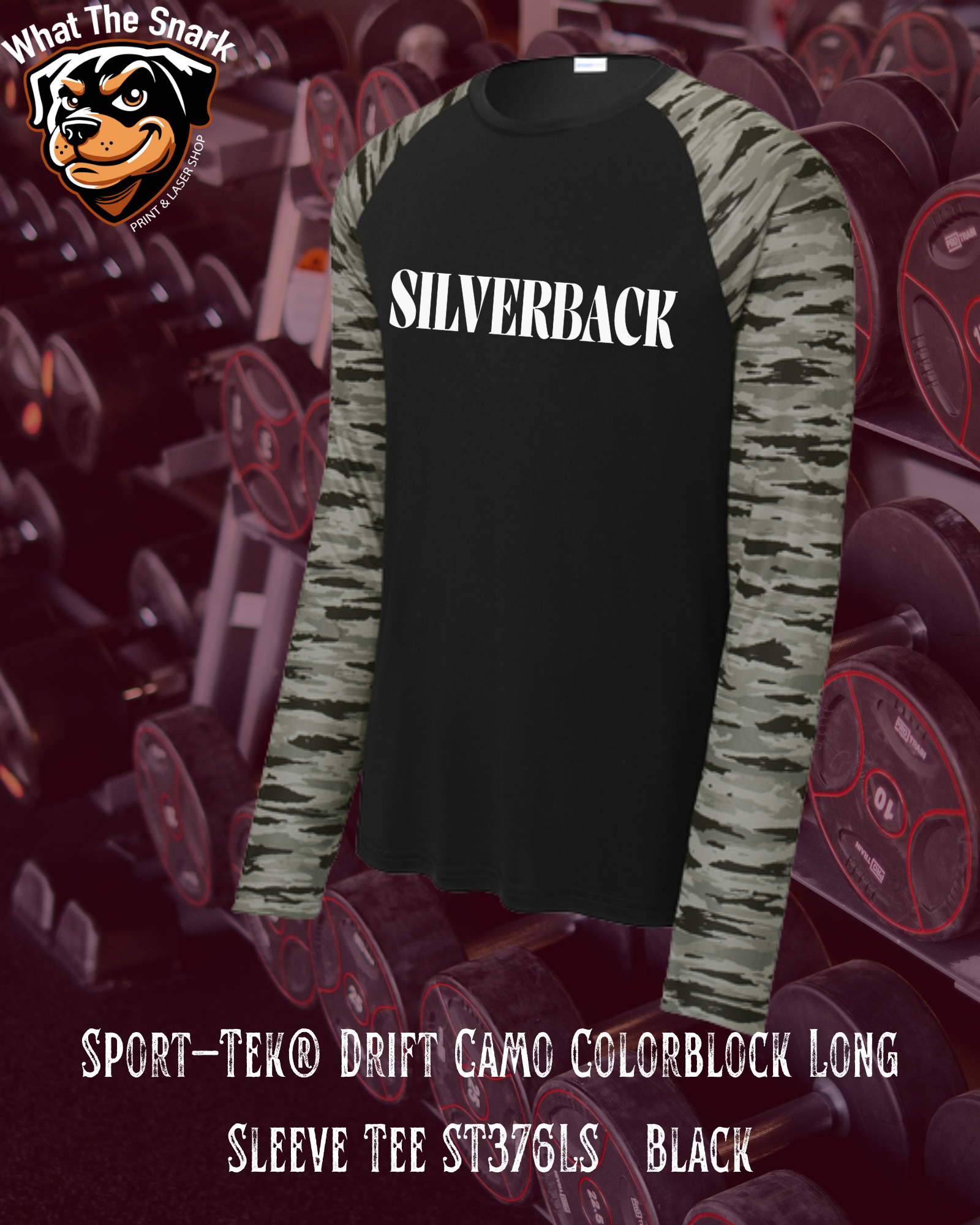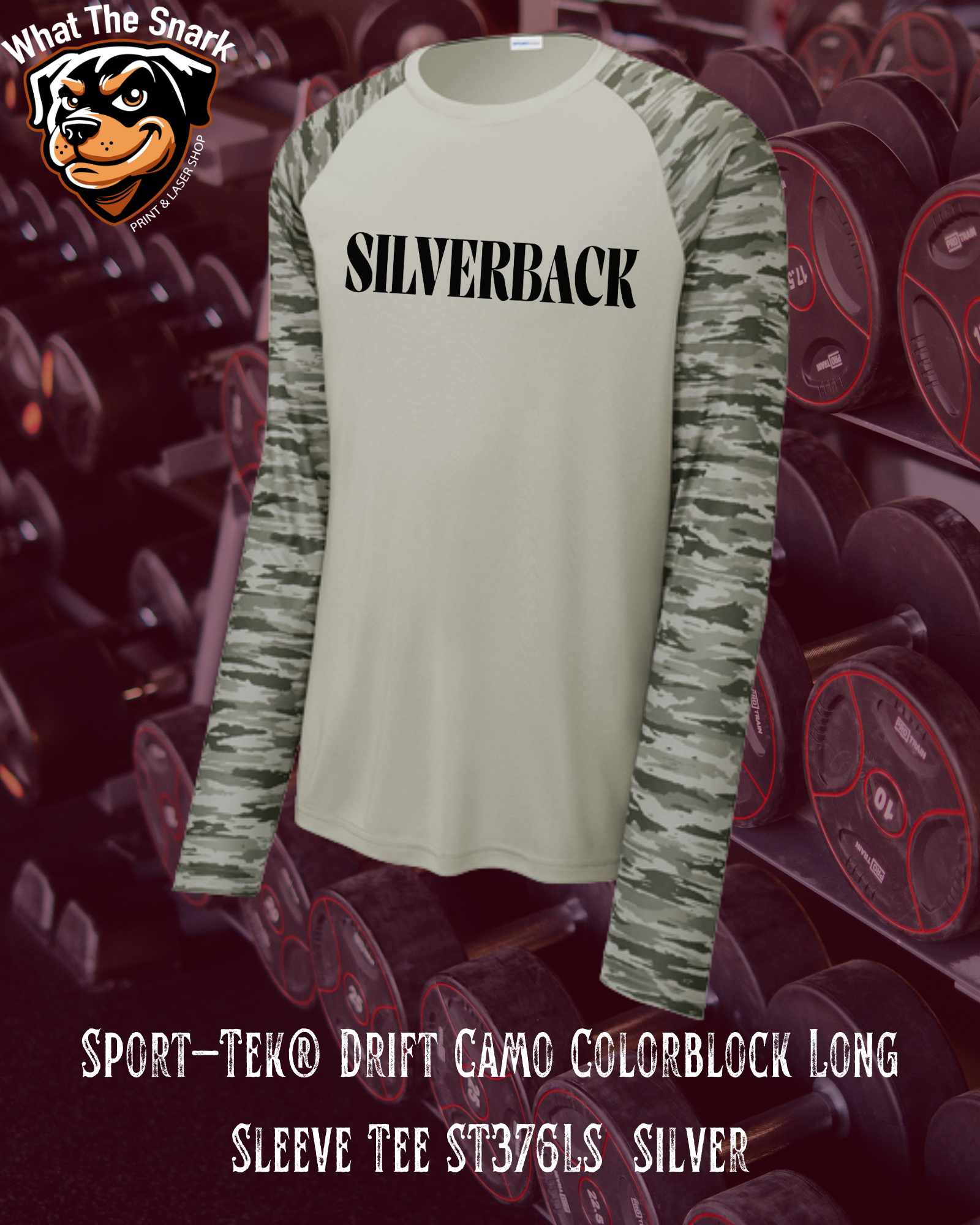 Camo look. Training mindset. This Sport-Tek long sleeve tee features a breathable performance fit with the Silverback Strength Text for a bold but clean finish.