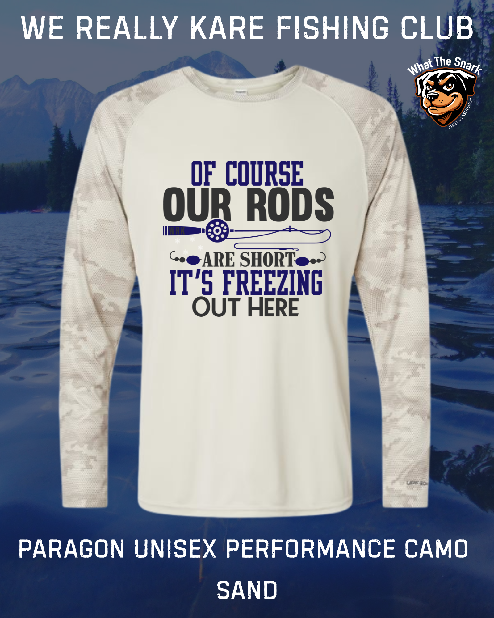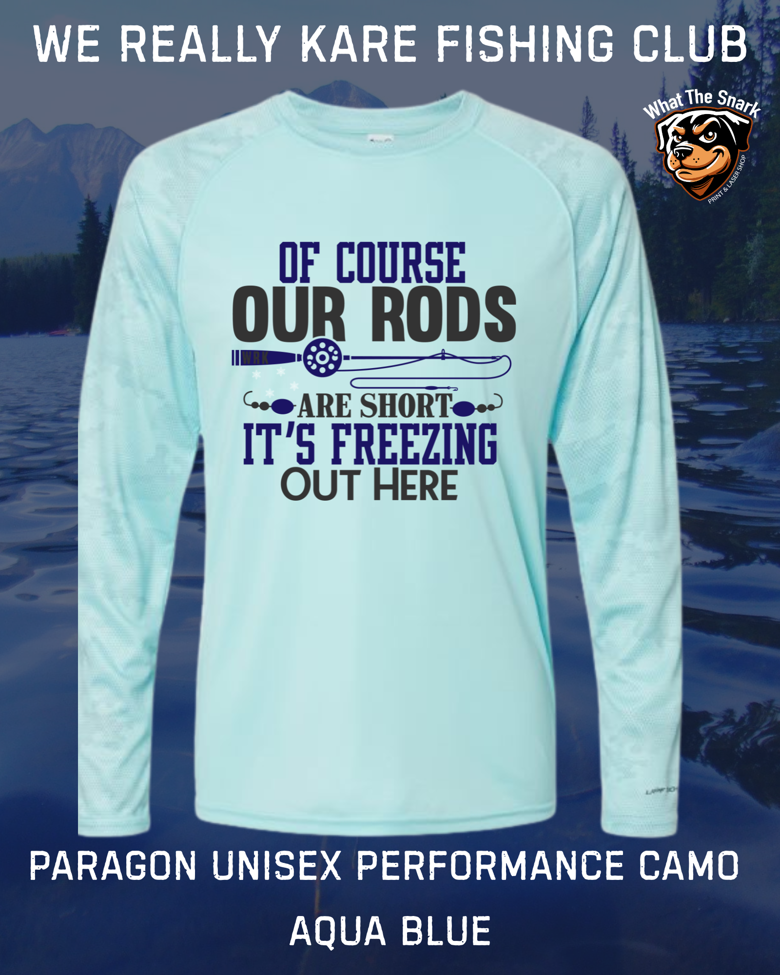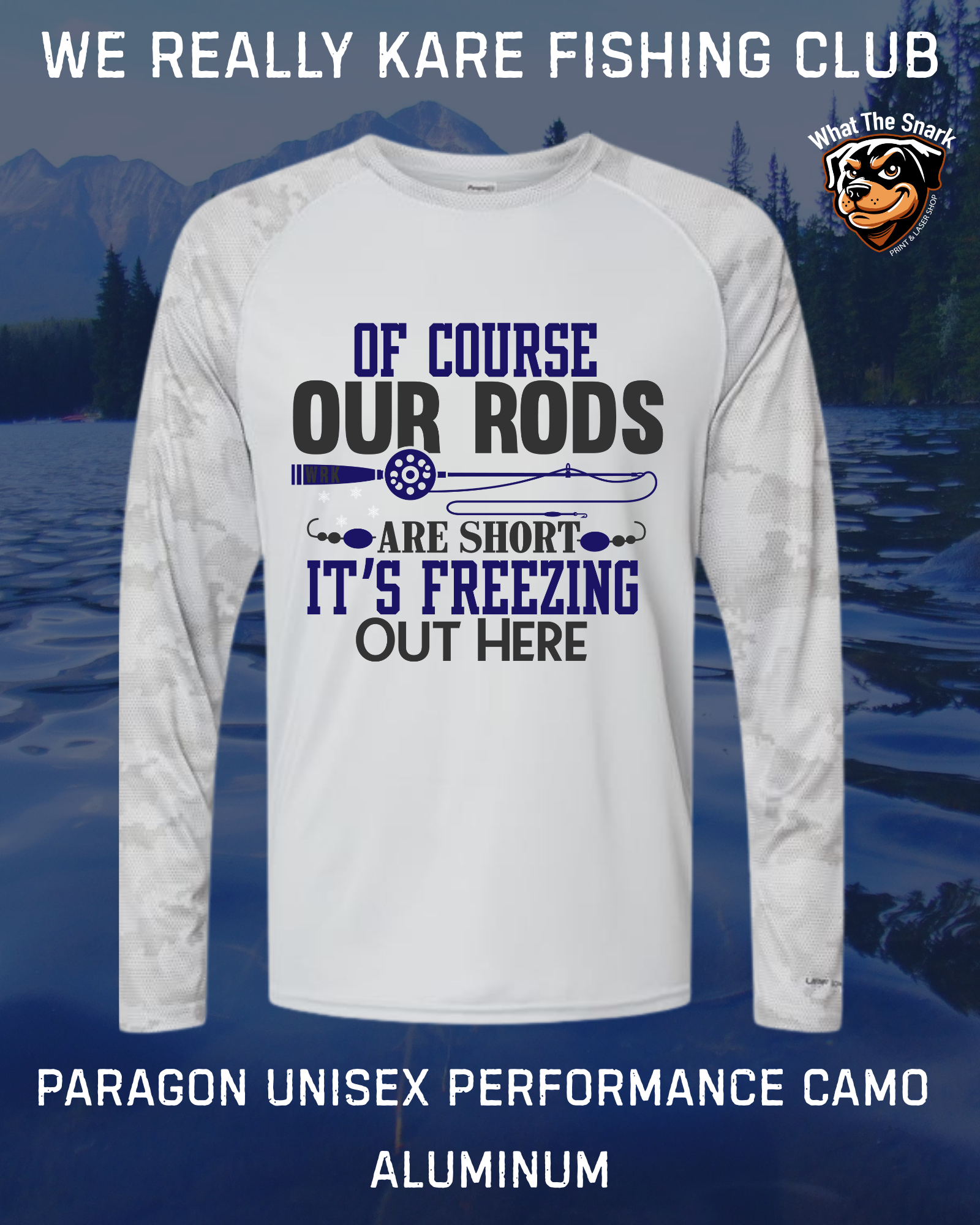 “Of course my rod is short — it’s freezing out here” design on a lightweight, breathable shirt made for active days outdoors. Moisture-wicking and comfortable, it’s ideal for layering or wearing solo when the temps drop.