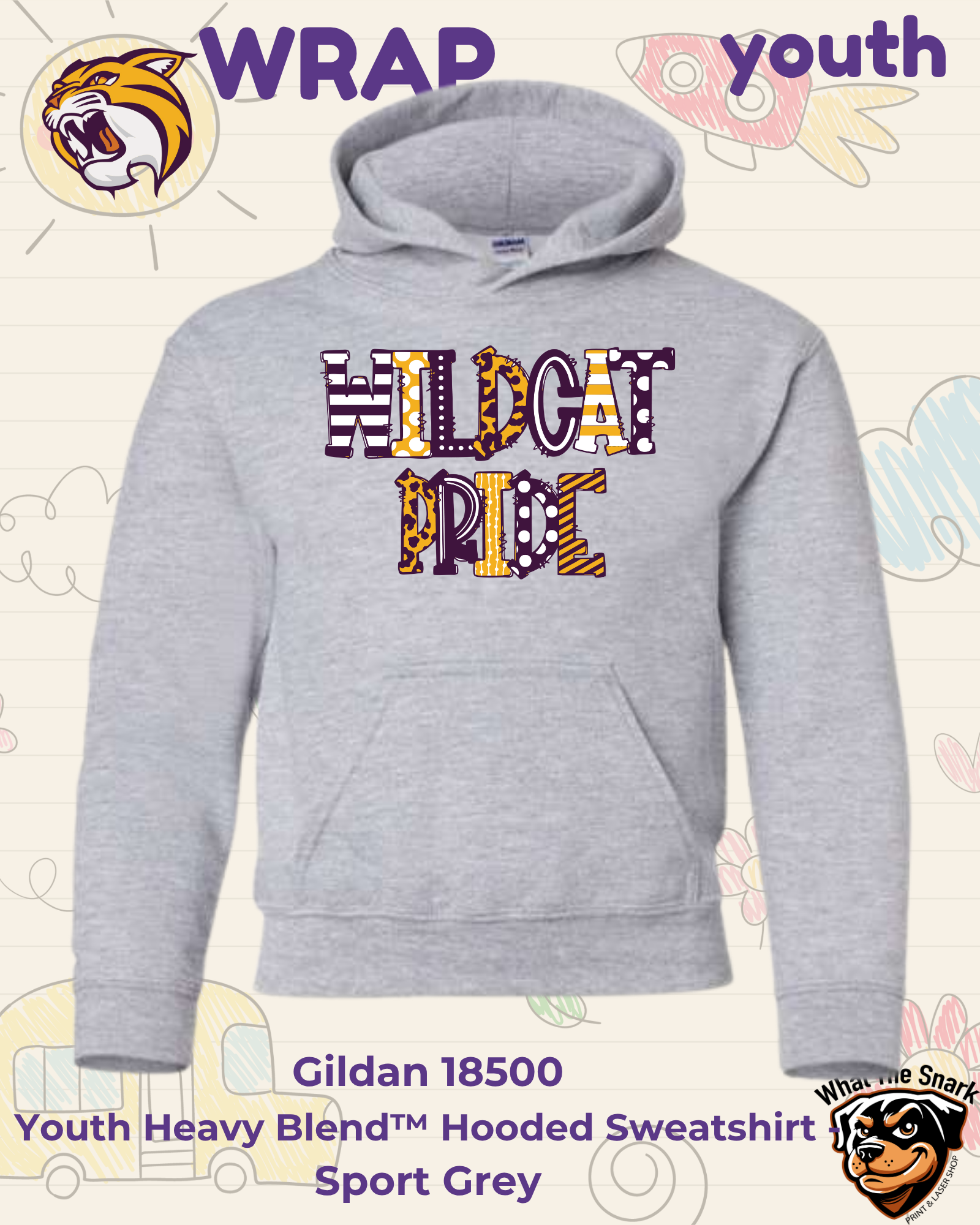 Youth Gildan Heavy Blend® Hoodie – “Wildcat Pride Doodle”